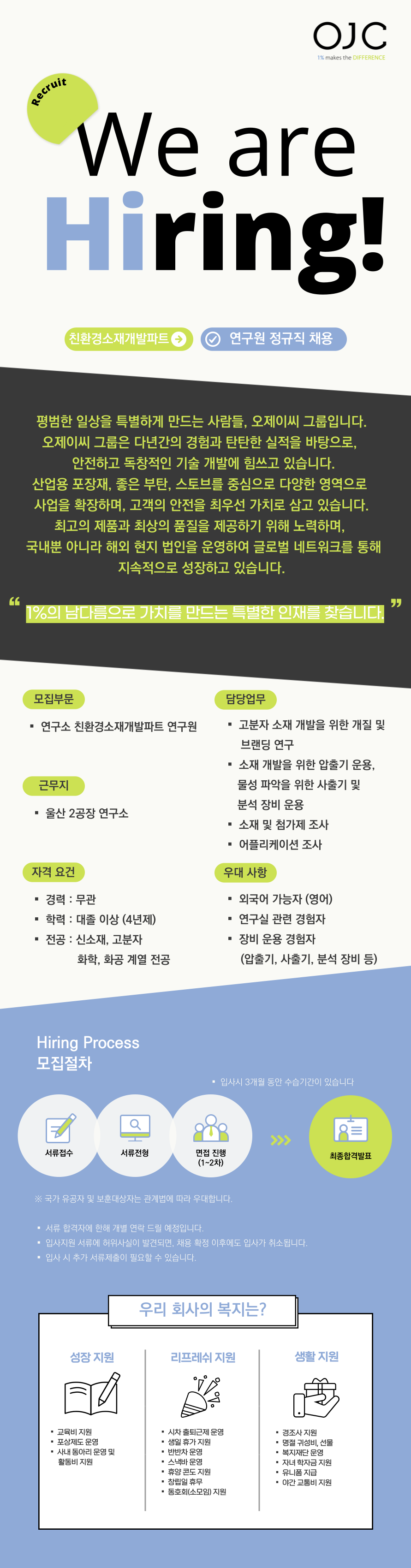 [오제이씨 그룹] 친환경소재개발파트 연구원 모집 안내